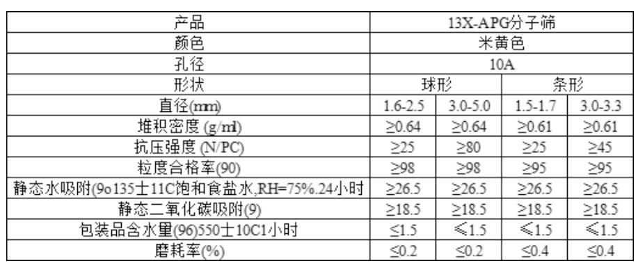 13X-APG分子篩,主要成分是硅鋁酸鹽,孔徑為10A。是為滿足深冷空分行業(yè)的特殊要求,進(jìn)一步提高分子篩對(duì)二氧化碳和水的吸附能力,避免空分過(guò)程中出現(xiàn)凍塔現(xiàn)象而生產(chǎn)的專用分子篩。